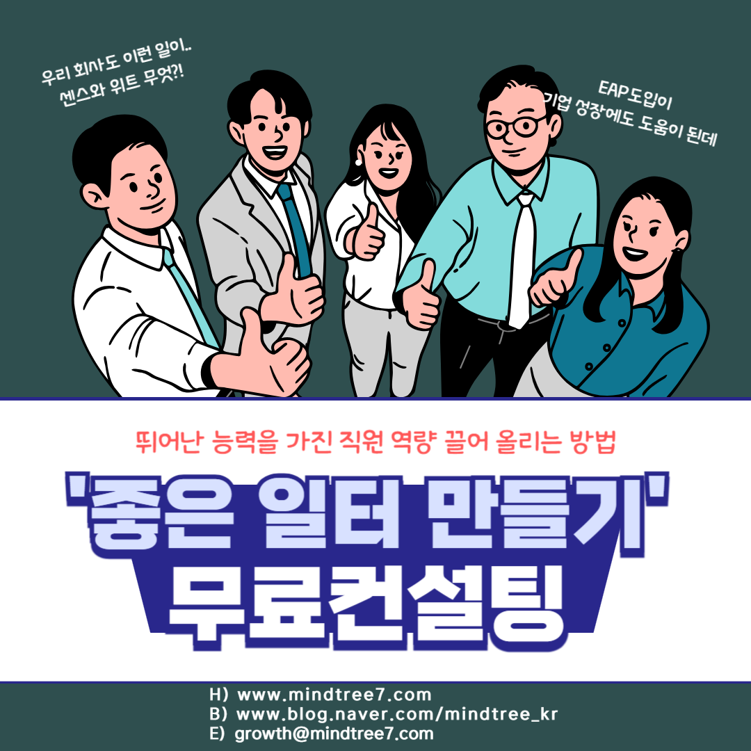 À̸¦ ÅëÇØ ±Ù·ÎÀÚÀÇ ¸¶À½ °Ç°À» ÁõÁø½Ã۰í, ±â¾÷ÀÇ »ý»ê¼ºÀ» ³ôÀÏ ¼ö ÀÖ½À´Ï´Ù. 1. ±â¾÷ ´ë»ó ¹«·á EAP ÄÁ¼³ÆÃ ¾È³» "ȸ»çÀÇ ÇÙ½É ÀÚ»ê, »ç¶÷ÀÇ ¸¶À½ºÎÅÍ Ã¬±â¼¼¿ä!" ÁÁÀº ¾ÆÀ̵ð¾î¿Í ÀÚº», À¯´ÉÇÑ ÀÎÀç´Â ±â¾÷ ¼ºÀåÀÇ Áß¿äÇÑ ¿ä¼ÒÀÔ´Ï´Ù. ÇÏÁö¸¸ ¾Æ¹«¸® ¶Ù¾î³ ÀÎÀç¶óµµ °úµµÇÑ ¾÷¹« ½ºÆ®·¹½º¿Í ´ëÀΰü°è ¹®Á¦, °³ÀÎÀûÀÎ ½É¸®Àû ¾î·Á¿òÀ» °ÞÀ¸¸é ±× ÀáÀç·ÂÀ» ÃæºÐÈ÷ ¹ßÈÖÇÏ±â ¾î·Æ½À´Ï´Ù. (ÁÖ)¸¶ÀÎµåÆ®¸®´Â ÀÌ·¯ÇÑ ¹®Á¦¸¦ ÇØ°áÇϱâ À§ÇØ ¹«·á EAP ÄÁ¼³ÆÃÀ» Á¦°øÇÕ´Ï´Ù. Á÷¿øÀÇ ¸¶À½ °Ç°À» ü°èÀûÀ¸·Î Áø´ÜÇϰí Áö¿øÇØ, °Ç°ÇÑ Á¶Á÷ ¹®È¸¦ ±¸ÃàÇÒ ¼ö ÀÖµµ·Ï µ½½À´Ï´Ù. ✔ ±â¾÷ÀÇ °æÀï·ÂÀ» ³ôÀÌ´Â ºñ°á EAP´Â Á÷¿øµéÀÇ ½ºÆ®·¹½º¿Í ¿ì¿ï°¨À» °¨¼Ò½Ã۰í, ±Ù¹« ȯ°æÀÇ ÁúÀ» ³ô¿© Á÷¿øÀÇ »ý»ê¼ºÀ» Çâ»ó½Ãŵ´Ï´Ù. Áö±Ý ¹Ù·Î ¹«·á ÄÁ¼³ÆÃÀ» ½ÅûÇϼ¼¿ä! 2. EAPÀÇ È¿°ú¿Í Çʿ伺 ¾È³» "Á÷¿øÀÇ °Ç°ÇÑ ¸¶À½, ±â¾÷ÀÇ °Ç°ÇÑ ¼ºÀå" ¼ºÀåÇÏ´Â ±â¾÷ÀÇ °øÅëÁ¡, ¹Ù·Î ¡®»ç¶÷¡¯À» °¡Àå ¸ÕÀú »ý°¢ÇÑ´Ù´Â °ÍÀÔ´Ï´Ù. Àϰú »îÀÇ ±ÕÇüÀÌ ±úÁø Á÷¿øµéÀº ÀáÀçÀûÀÎ ¸®½ºÅ©°¡ µÇ¸ç, ÀÌ´Â ¾÷¹« ´É·Â ÀúÇÏ¿Í ±â¾÷ ¼º°ú¿¡µµ ºÎÁ¤ÀûÀÎ ¿µÇâÀ» ¹ÌĨ´Ï´Ù. EAP´Â ´ÙÀ½°ú °°Àº È¿°ú°¡ ÀÖ½À´Ï´Ù. 1. ¾÷¹« ½ºÆ®·¹½º °¨¼ÒÇö´ë »çȸ¿¡¼ ¾÷¹« ½ºÆ®·¹½º´Â °úµµÇÑ ¾÷¹«·®°ú ¼º°ú ¾Ð¹Ú µîÀ¸·Î ¸¹Àº Á÷ÀåÀε鿡°Ô ½É°¢ÇÑ ¹®Á¦·Î ³ªÅ¸³ª°í ÀÖ½À´Ï´Ù. EAP´Â ü°èÀûÀÎ ½ºÆ®·¹½º °ü¸® ÇÁ·Î±×·¥°ú Àü¹®°¡ »ó´ãÀ» ÅëÇØ ½ºÆ®·¹½º¸¦ ÁÙÀÌ°í ½É¸®Àû ¾ÈÁ¤À» Á¦°øÇÕ´Ï´Ù. À̸¦ ÅëÇØ Á÷¿øµéÀº ½ºÆ®·¹½º ¿äÀÎÀ» È¿°úÀûÀ¸·Î °ü¸®ÇÏ¸ç ±àÁ¤ÀûÀÎ ¸¶À½ »óŸ¦ À¯ÁöÇÒ ¼ö ÀÖ½À´Ï´Ù. 2. ¾÷¹« È¿À²¼º Çâ»ó½É¸®Àû ºÎ´ãÀº ¾÷¹« ÁýÁ߷°ú È¿À²¼ºÀ» ÀúÇϽÃŵ´Ï´Ù. EAP´Â Á÷¿øµéÀÌ ÀÚ½ÅÀÇ ½É¸®Àû ¾î·Á¿òÀ» ÇØ°áÇÏ¿© ¾÷¹«¿¡ ¿ÂÀüÈ÷ ÁýÁßÇÒ ¼ö Àִ ȯ°æÀ» Á¶¼ºÇÕ´Ï´Ù. ¶ÇÇÑ, °³ÀÎ ¸ÂÃãÇü Áö¿øÀ» ÅëÇØ ¾÷¹« ¸ôÀÔµµ¿Í âÀǼºÀ» ³ôÀ̰í, ½º½º·Î È¿À²¼ºÀ» Çâ»ó½ÃŰ´Â ¹æ¹ýÀ» ½ÀµæÇÒ ¼ö ÀÖµµ·Ï µ½½À´Ï´Ù. 3. Á¶Á÷ ³» ¼ÒÅë °³¼±´ëÀΰü°è °¥µî°ú ¼ÒÅë ¹®Á¦´Â Á÷¿øµéÀÇ ½ºÆ®·¹½º¸¦ ³ôÀ̰í Çù·Â¿¡ ºÎÁ¤Àû ¿µÇâÀ» ÁÝ´Ï´Ù. EAP´Â °¥µî ÇØ°á ¹× ¼ÒÅë ÈÆ·Ã ÇÁ·Î±×·¥À» Á¦°øÇÏ¿©, Á÷¿øµéÀÌ ´õ ³ªÀº ¼ÒÅë ´É·ÂÀ» °®Ãß°í Çù·ÂÇÒ ¼ö Àִ ȯ°æÀ» ¸¸µì´Ï´Ù. °ü¸®ÀÚµéÀ» À§ÇÑ ¸®´õ½Ê °³¹ß Áö¿øÀ» ÅëÇØ »óÈ£ ½Å·Ú¿Í ±àÁ¤ÀûÀÎ Á¶Á÷ ¹®È¸¦ Çü¼ºÇÏ´Â µ¥ µµ¿òÀ» ÁÝ´Ï´Ù. 4. ±× ¿Ü Ãß°¡ÀûÀÎ ÀåÁ¡- EAP´Â ±Ù·ÎÀÚÀÇ Àü¹ÝÀûÀÎ »îÀÇ ÁúÀ» Çâ»ó½Ã۸ç, ÀÌÁ÷·ü °¨¼Ò¿Í Á¶Á÷ ¹®È °³¼±¿¡ ±â¿©ÇÕ´Ï´Ù. - °Ç°ÇÑ Á÷Àå ȯ°æÀ» Á¶¼ºÇÏ¿© ±â¾÷ÀÇ Àå±âÀûÀÎ ¼º°ú¸¦ µµ¸ðÇÒ ¼ö ÀÖ½À´Ï´Ù. - EAP µµÀÔÀ» ÅëÇØ ±â¾÷°ú Á÷¿ø ¸ðµÎ¿¡°Ô ±àÁ¤ÀûÀÎ º¯È¸¦ ¸¸µé¾î º¸¼¼¿ä! 3. Ÿ°Ù ¸ÂÃãÇü EAP È«º¸ ¸Þ½ÃÁö "»ç¶÷ÀÌ ±â¾÷ÀÇ °¡Àå Áß¿äÇÑ ÀÚ»êÀÔ´Ï´Ù." Á÷¿øµéÀÇ ¸¶À½ °Ç°Àº °ð ±â¾÷ÀÇ °Ç°ÀÔ´Ï´Ù. ¿äÁò °°Àº ºÒÈ®½ÇÇÑ ½Ã´ë, Á÷¿øµéÀÇ ¸¶À½ °Ç° °ü¸®´Â ÇʼöÀÔ´Ï´Ù. (ÁÖ)¸¶ÀÎµåÆ®¸®ÀÇ EAP ÄÁ¼³ÆÃÀº ±Ù·ÎÀÚÀÇ ½ºÆ®·¹½º °ü¸®, ´ëÀΰü°è µî¿¡ °üÇÑ ÄÁ¼³ÆÃÀ» ÅëÇØ ±â¾÷ÀÌ °Ç°ÇÏ°Ô ¼ºÀåÇϴµ¥ ÇÊ¿äÇÑ ºÎºÐÀº ¹«¾ùÀÎÁö Áø´ÜÇÏ°í ±Ù·ÎÀÚ »Ó ¾Æ´Ï¶ó ±â¾÷ ¶ÇÇÑ °Ç°ÇÑ ¼ºÀåÀ» ÇÒ ¼ö ÀÖµµ·Ï Áö¿øÇÕ´Ï´Ù. Áö±Ý ¹«·á ÄÁ¼³ÆÃÀ» ½ÅÃ»ÇØº¸¼¼¿ä. ¹®ÀÇ: ȨÆäÀÌÁö ³» °Á ¹× »ó´ã¹®ÀÇ E) growth@mindtree7.com O) 050-6861-3270 ![]() ![]()